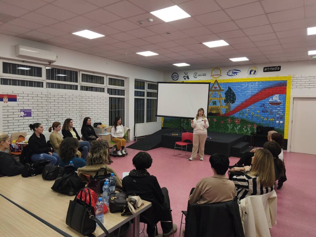 Prva radionica održana je u zgradi Opštine Novi Beograd u Bulevaru Milutina Milankovića 34. Tokom dvočasovnog programa, koji je vodila holistički terapeut Tanja Živković, učesnice su imale priliku da nauče različite tehnike disanja i komunikacije koje mogu pomoći u prevazilaženju stresa, ali i u lakšem suočavanju sa zahtevnim životnim situacijama.