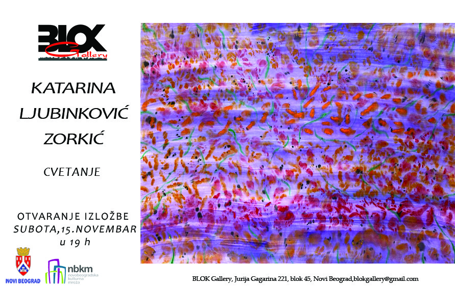 U novobeogradsku Blok galeriju (Jurija Gagarina 221) 15. novembra stigla je izložba „Cvetanje“, najnoviji umetnički opus Katarine Ljubinković Zorkić. Publika ovu vizuelnu celinu može da pogleda do 28. novembra, uz mogućnost da se u intimnoj atmosferi galerije upozna sa novim fazama njenog stvaralaštva.